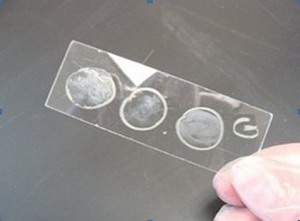 首先,用蠟筆畫上一個圓載玻片分離的細菌,每一個將要進行采樣類型。 如果只有一種類型的細菌或細菌混合樣品單被簡單染色準備,那就不需要分離了。