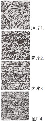 使用顯微鏡觀察熱加工對鋼料晶粒大小的影響 照片1. 0.37%C 碳鋼(鑄造狀態) 照片2. 50% 熱壓延后的組織 照片3. 75% 熱壓延后的組織 照片4. 95% 熱壓延后的組織
